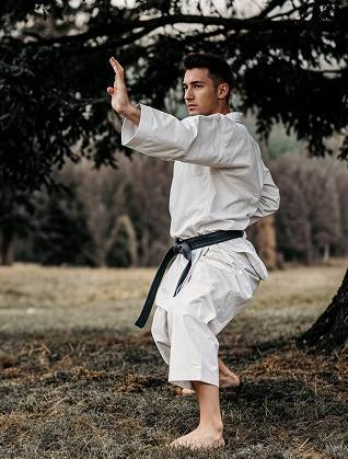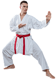 For your first class, just wear comfortable workout clothing like a t-shirt and track pants or shorts. You don't need the karate uniform yet.